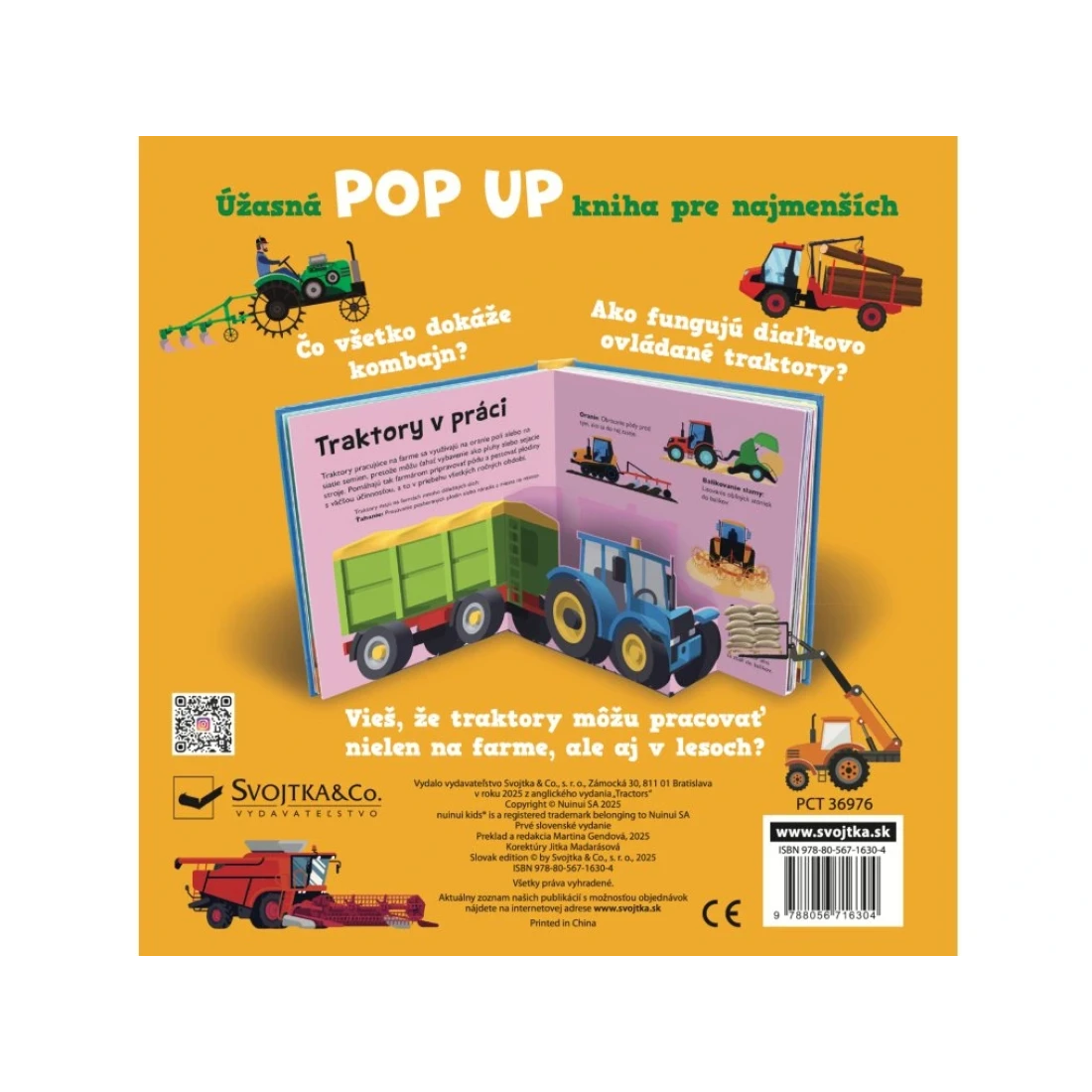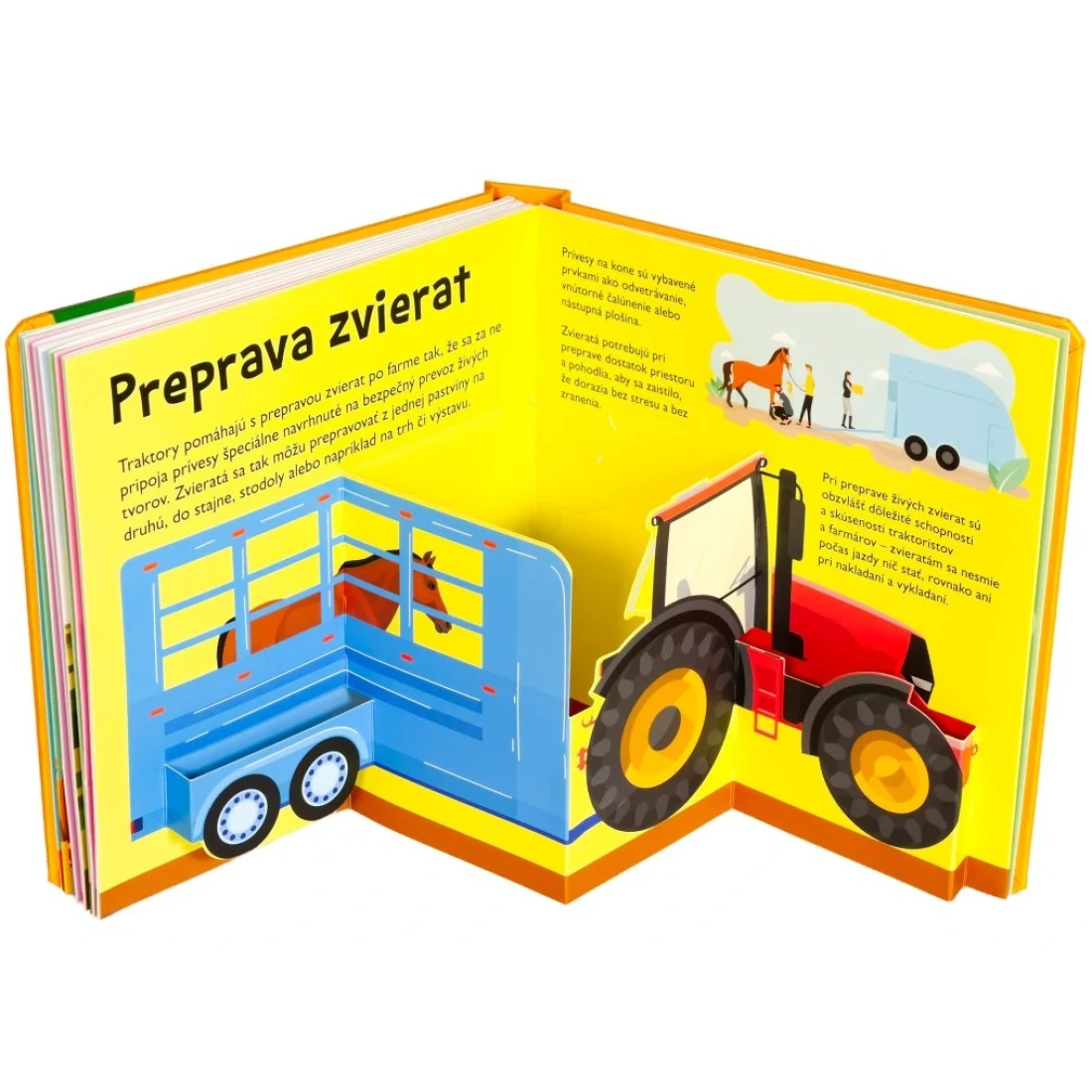 Interaktívna a zábavná pop-up kniha pre malých zvedavcov, ktorí chcú objavovať traktory, ich funkcie a prácu na farme, v lese aj na stavbe.