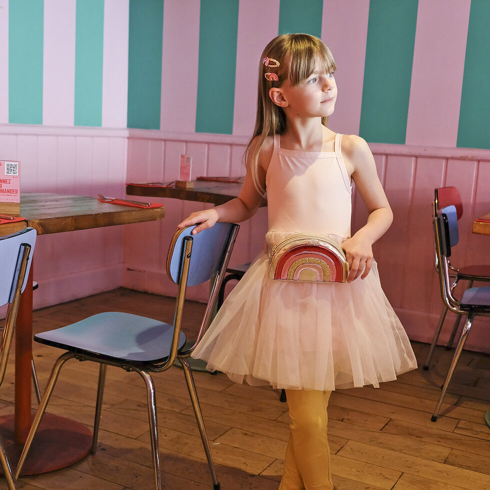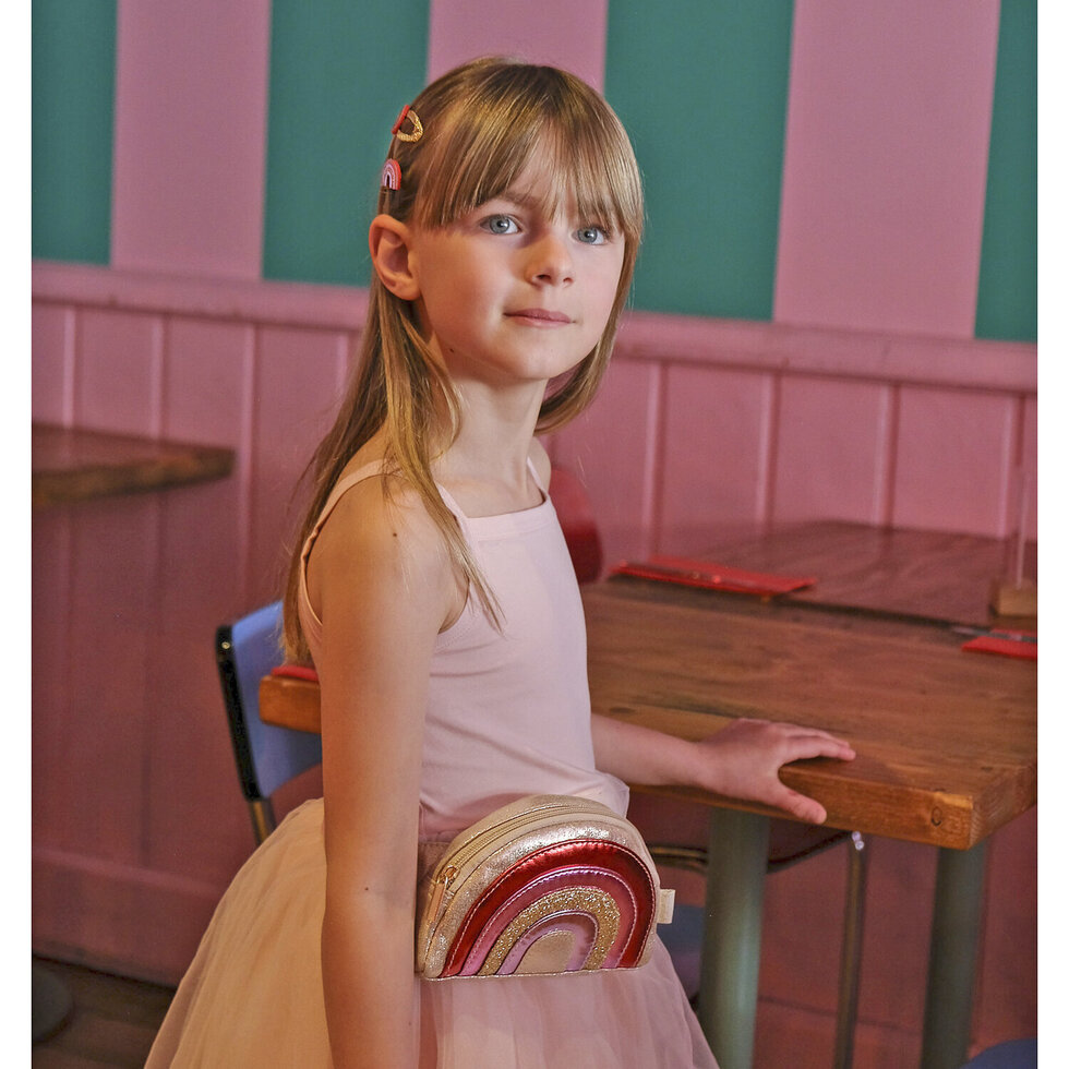 Pripravte sa na trblietanie, lesk a boogie nádych s našou disco dúhovou ľadvinkou! Táto nádherná taška v palete jasných a zábavných farieb s nádhernými zlatými trblietkami a mäkkým zamatom je celá podšitá fóliovou látkou s potlačou hviezd, má zapínanie na zips, nastaviteľný popruh a pútko na opasok. Rozmery tašky: 18 cm x 10 cm x 3 cm. Maximálna dĺžka pása: 78 cm.