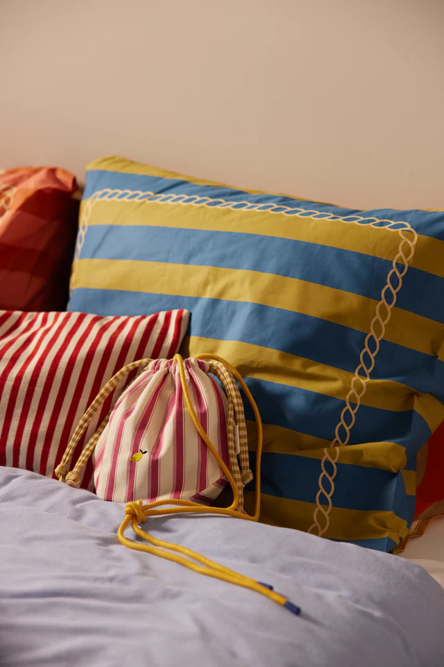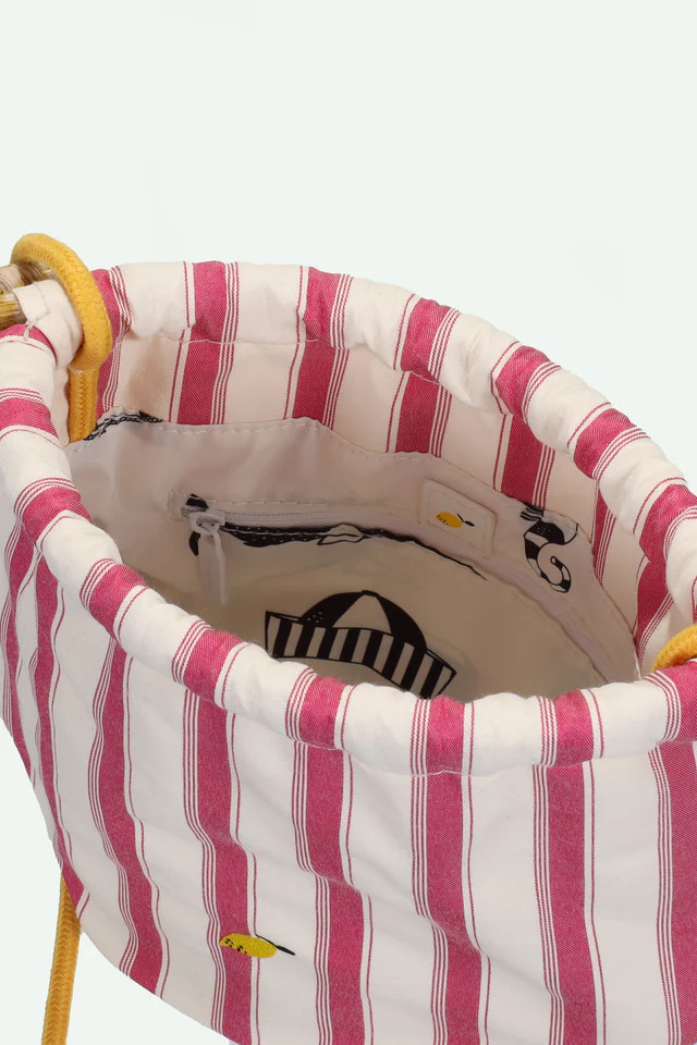 Táto taška sa zapína šnúrkou a jej pyžamové pruhy pojmú všetky vaše hlbokomorské nálezy. Vo vnútri je malé extra vrecko, ktoré sa zapína na zips. Popruh sa dá uviazať na požadovanú dĺžku, takže ju môže nosiť ktokoľvek!